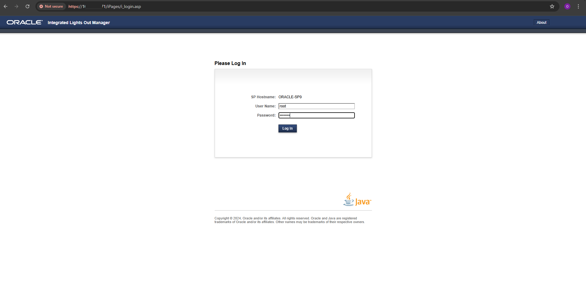 URL typically looks like: https://<ilom-ip>/